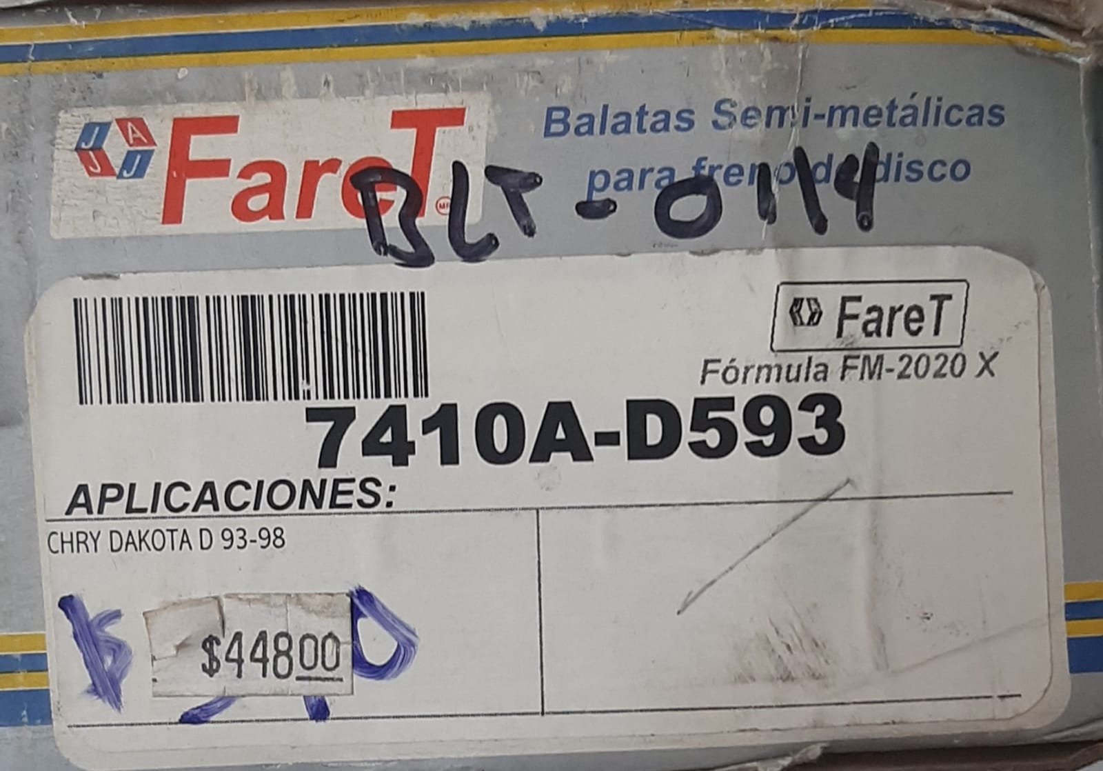 BALATAS SEMI-METALICAS PARA FRENO DE DISCO CHRY DAKOTA D 93-98 7410A-D593