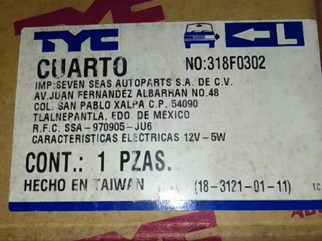 CUARTO FORD ECONOLINE 92-03 LH TYC IZQUIERDO N°318F0302 (ANTES CT-0234) 18-3121-01-11 12V-5W