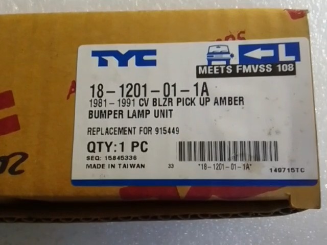 CUARTO LAT. CHEVROLET PICK-UP 81-91 LH TYC IZQUIERDA 18-1201-01-1A MEETS FMVSS 108 140714TC