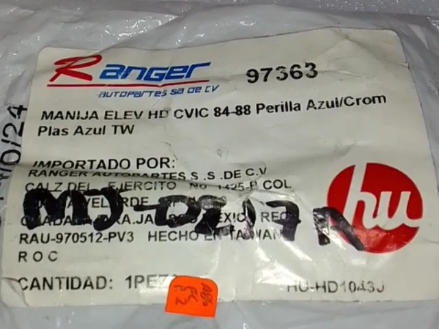 MANIJA ELEV HD CVIC 84-88 PERILLA AZUL/CROM PLAS AZUL TW HU-HD1043J 012130224 97353