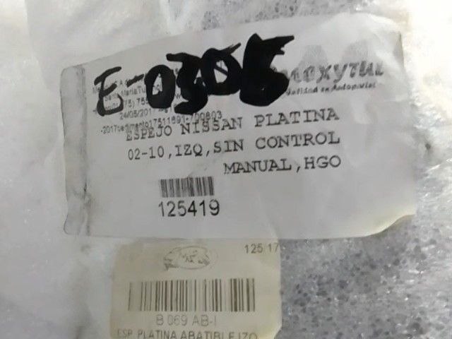 ESPEJO NISSAN PLATINA 02-10 IZQ SIN CONTROL MANUAL HGO B069AB-I 125419