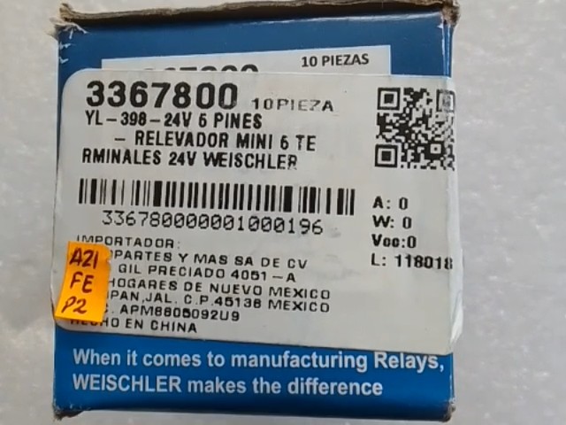 RELEVADOR MINI 6TERM. 24V WEISCHLER 6 PIN 3367800