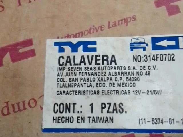 CALAVERA MARQUIS TYC IZQUIERDO N°314F0702 11-5374-01-1A 12V-21/5W